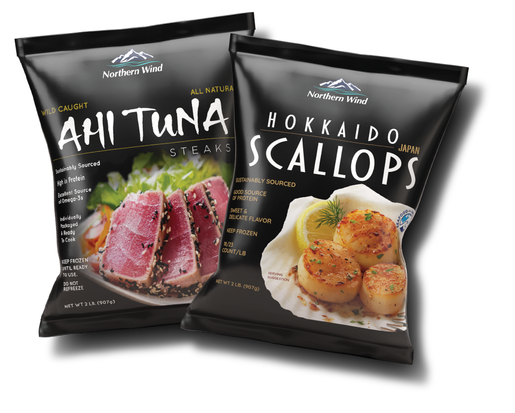 Northern Wind’s Ahi Tuna and Hokkaido Scallops now stand out in Costco’s high-traffic frozen section with packaging that reflects the company’s standards for quality and sustainability. The 2lb bags offer a premium feel, clear product promise, and consumer confidence in every detail from sourcing story to cooking instructions.